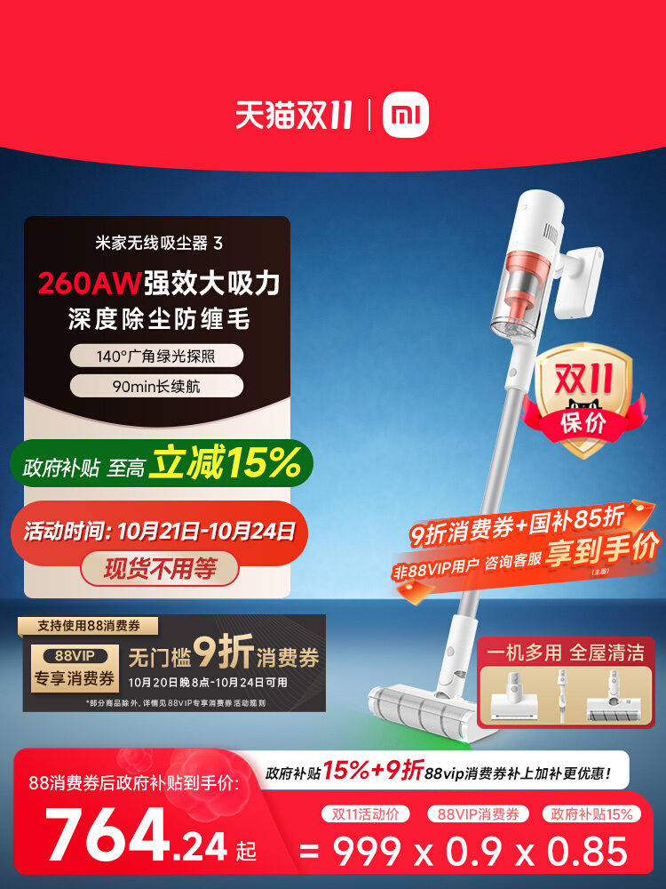 小米米家无线吸尘器3家用大吸力手持清洁吸拖一体开荒保洁大功率