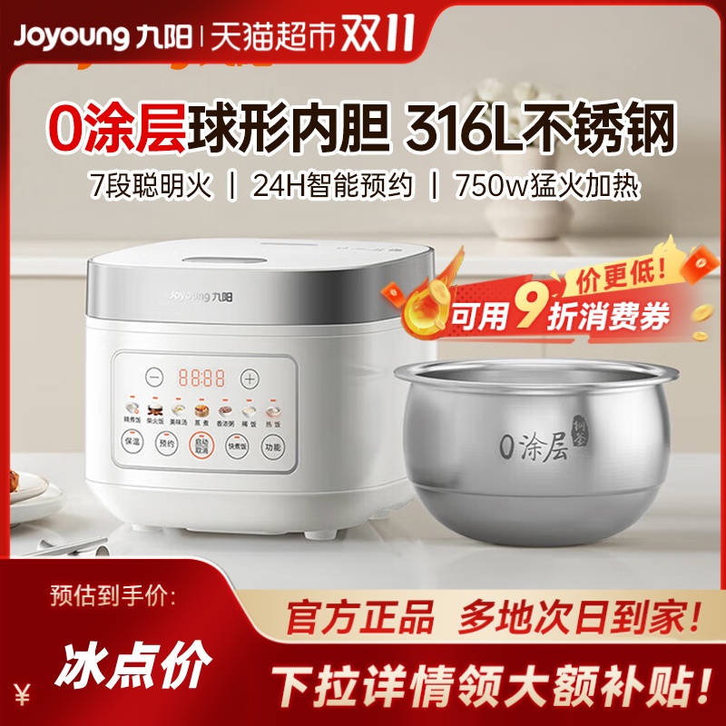 九阳电饭煲3L家用电饭锅0涂层316L不锈钢内胆压力煲微压电压力锅