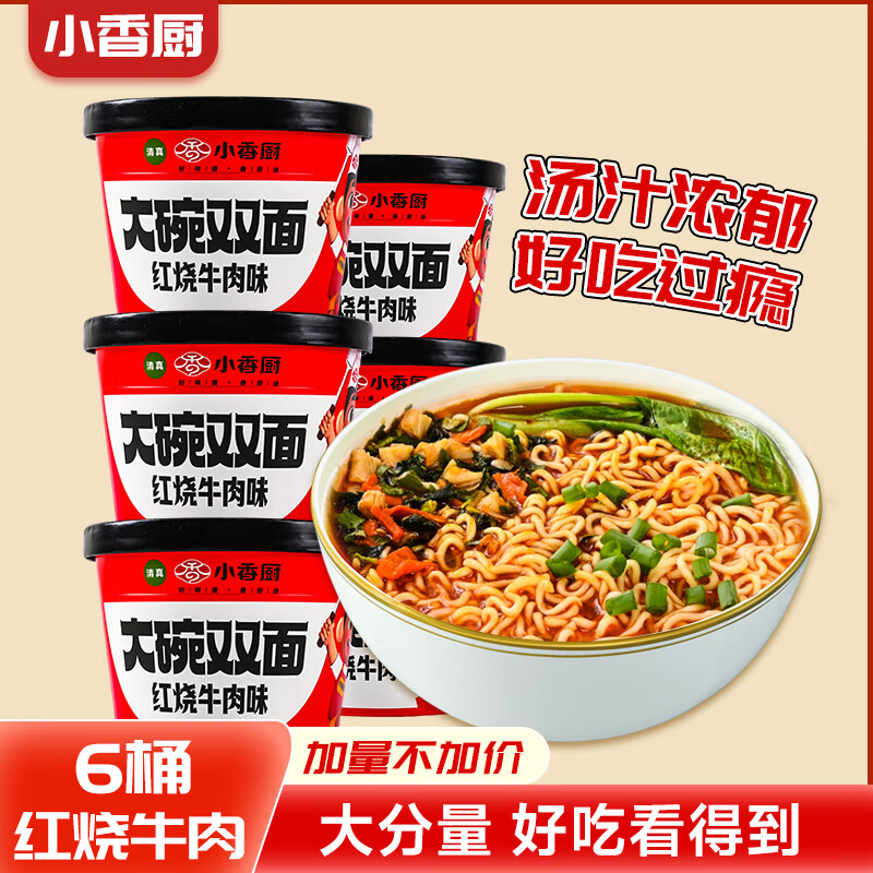 小香厨方便面 大碗双面红烧牛肉味168g*6桶 双份面饼免煮方便速食