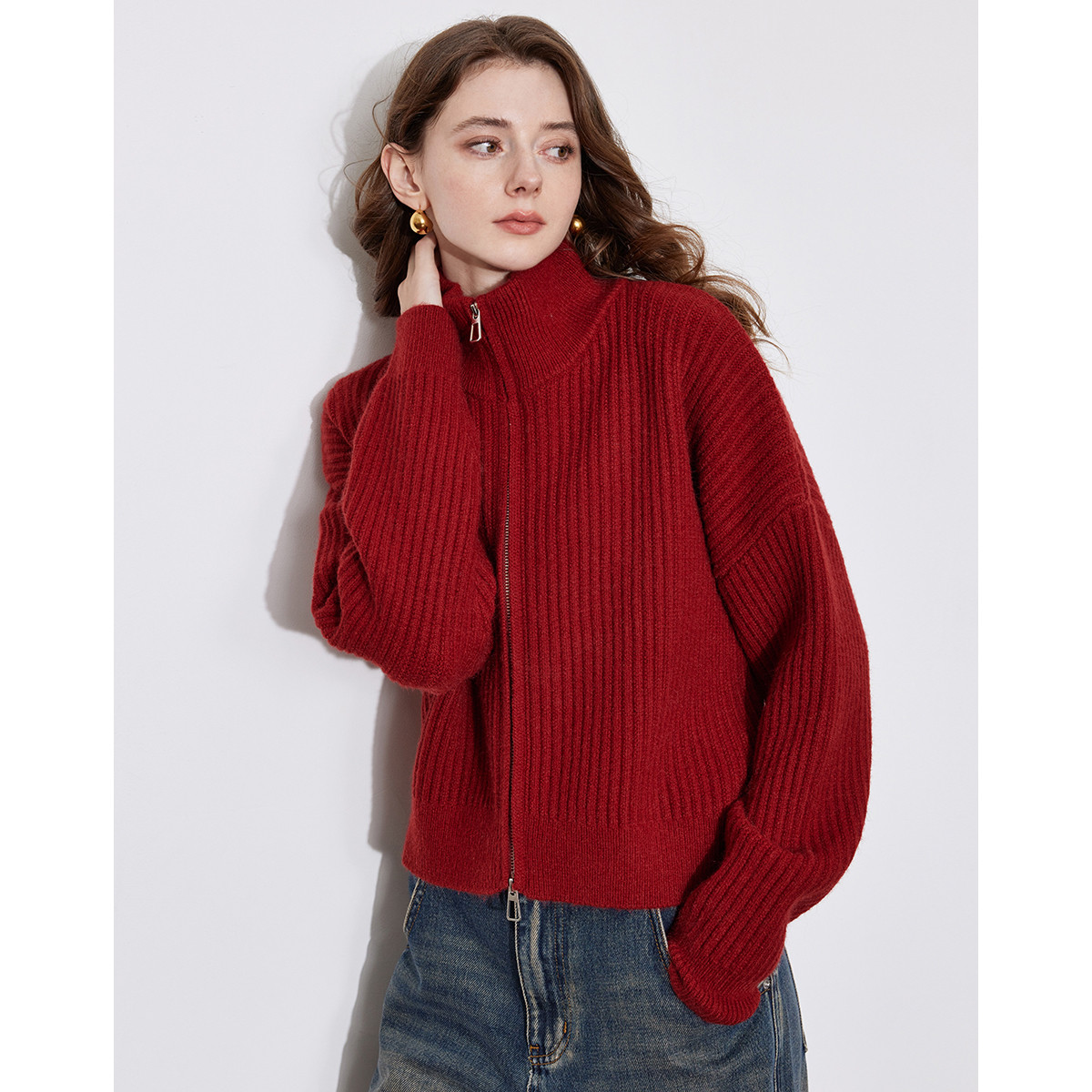 毛衣外套女春秋时尚高级感拉链立领显瘦长袖针织开衫上衣
