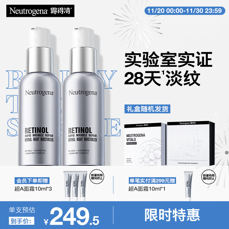 露得清三抗超A醇面霜抗皱修复晚霜30ml*2淡化细纹保湿护肤礼盒装送女友