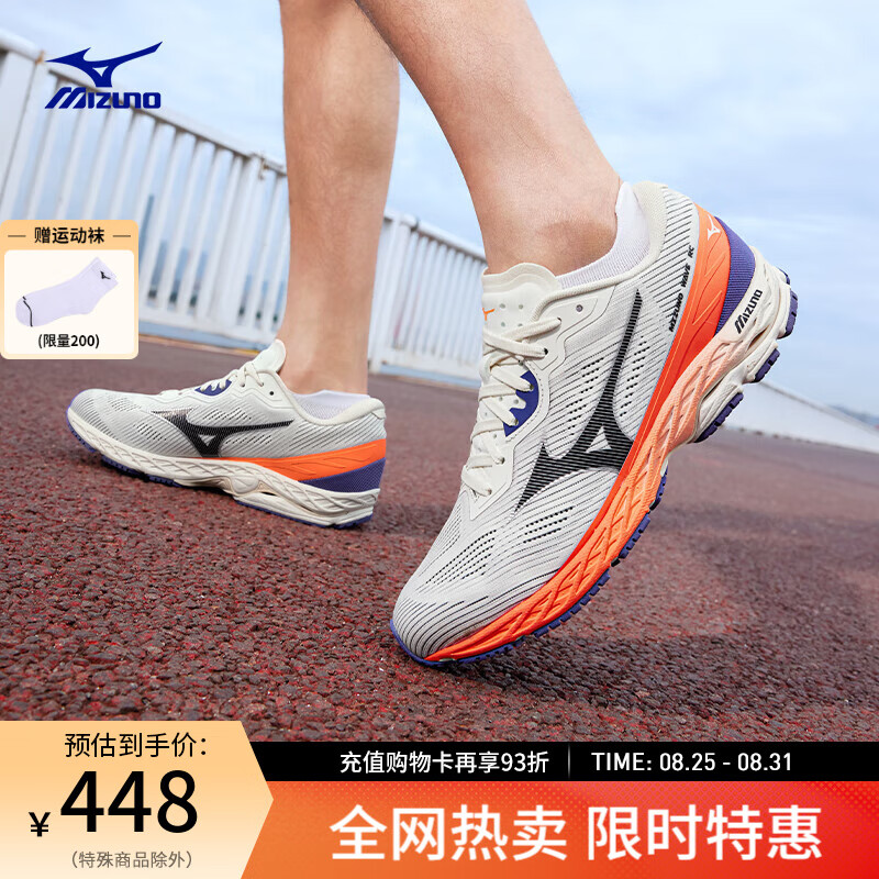 美津浓(MIZUNO)25新款春夏缓震回弹跑步竞速训练鞋运动鞋 WAVE RC 02/米白色/荧光橘/紫色 42 (270mm)