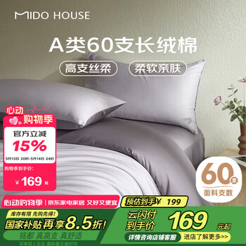 MIDO HOUSE铭都60支长绒棉纯棉贡缎纯色床单被套床上四件套杜若紫1.5m床单款