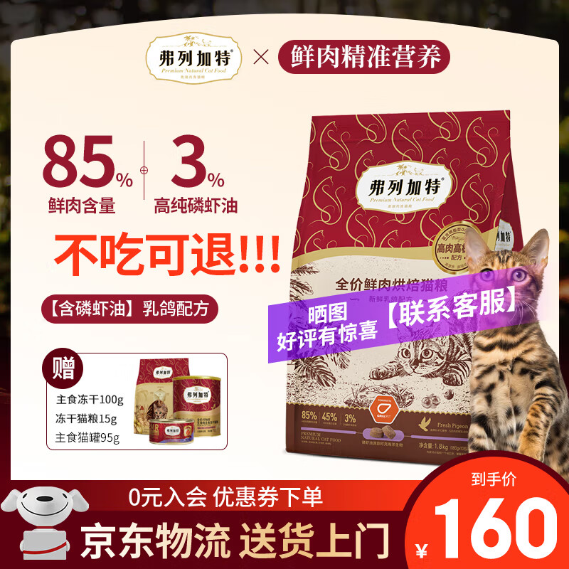 弗列加特鲜肉烘焙粮85%全价鲜肉成猫幼猫老年猫通用全期鲜肉天然粮 【含磷虾油】乳鸽配方1.8kg
