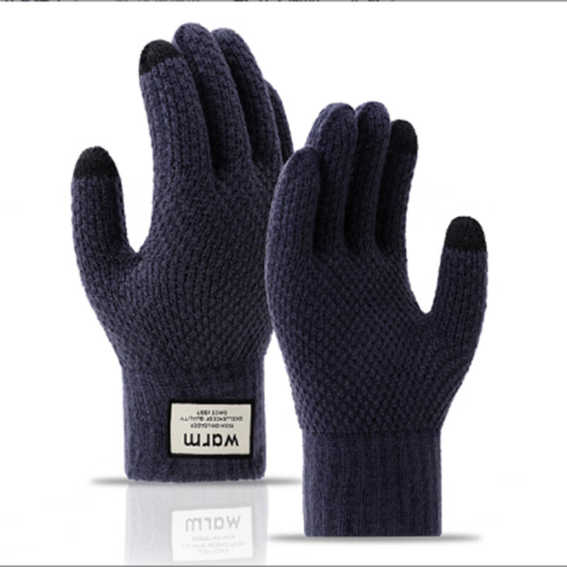 卫墨墨冬天男毛线手套秋冬季针织加厚加绒触屏骑行防寒 保暖手套-藏青色-1双 无规格