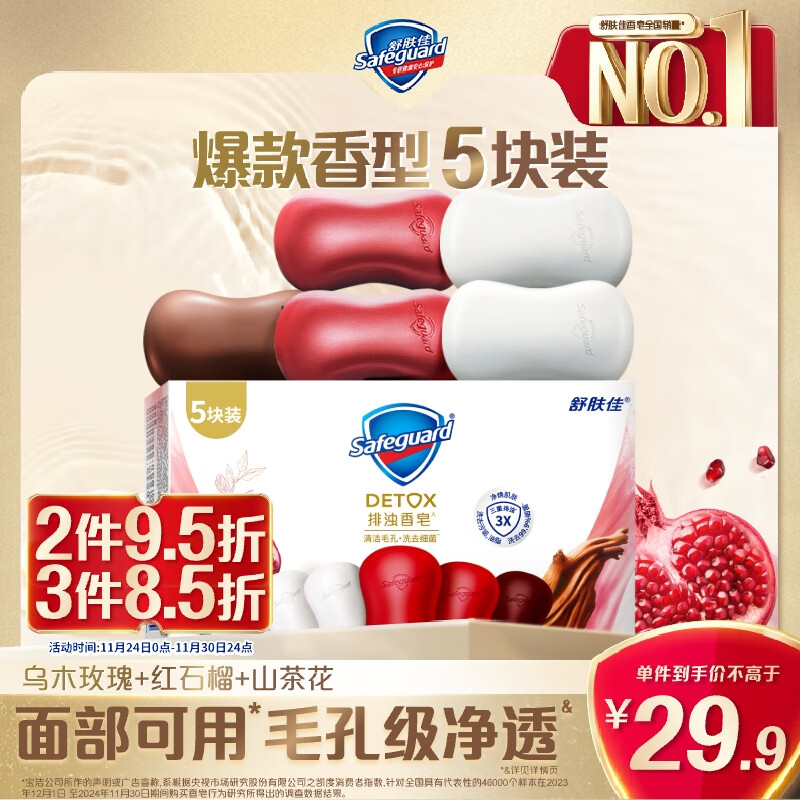 舒肤佳排浊香皂100g*5(乌木玫瑰*1+红石榴*2+山茶花*2)肥皂洗脸洗澡洁面