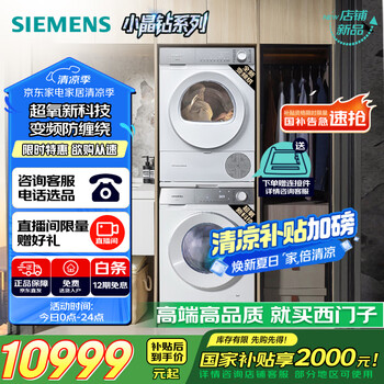 西门子(SIEMENS)小晶钻超氧版Pro 洗烘套装 10kg滚筒全自动洗衣机+10kg变频热泵烘干机 WG54H1E00W+WQ53H2001W