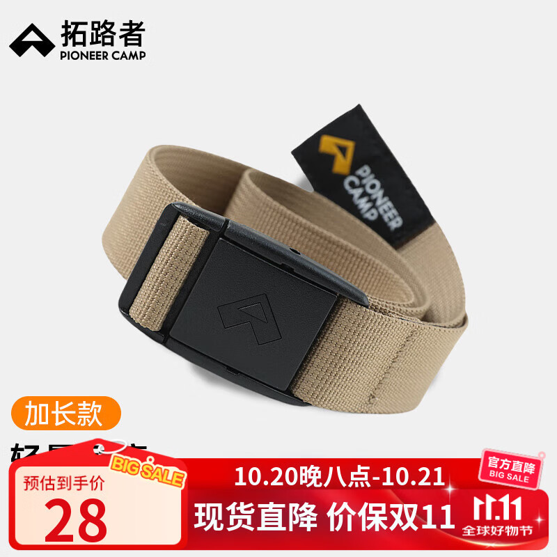 拓路者户外登山裤腰带男女运动轻量便捷塑料卡口加宽加长编织腰带 卡其