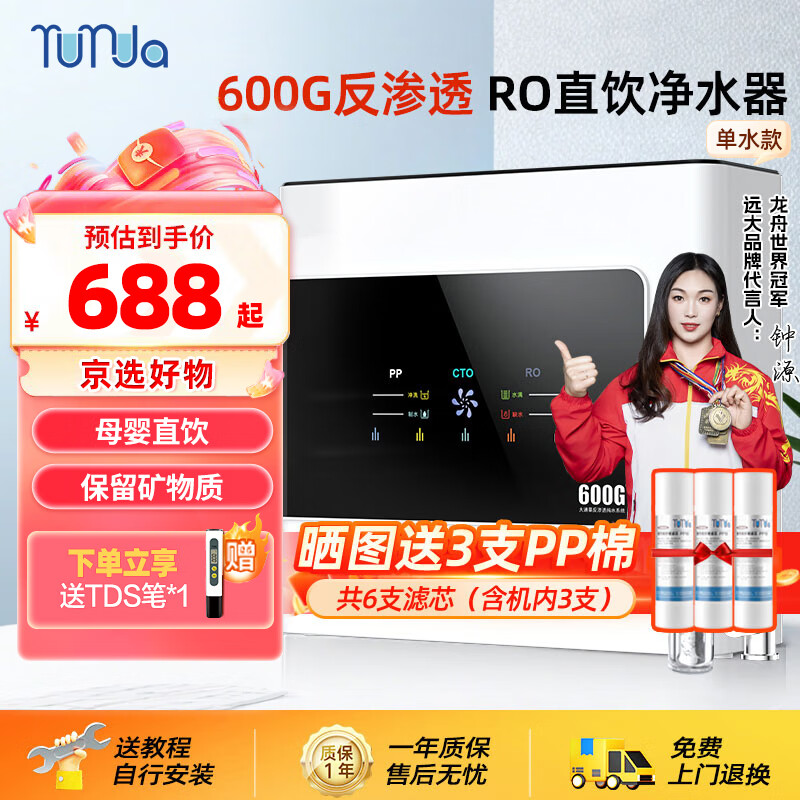 远大健科rurua净水器大通量RO反渗透家用无罐厨下式直饮机配通用滤芯纯水机600g800g 【升级璞勒】600G(单水 自行安装 )