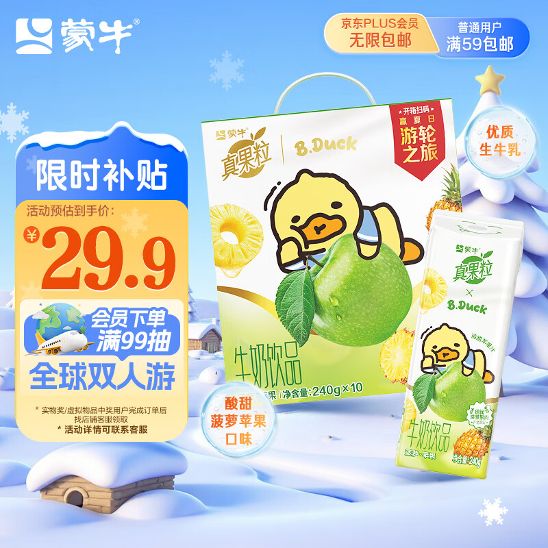 蒙牛真果粒菠萝苹果味 240g*10盒 小黄鸭IP定制装 送礼盒装