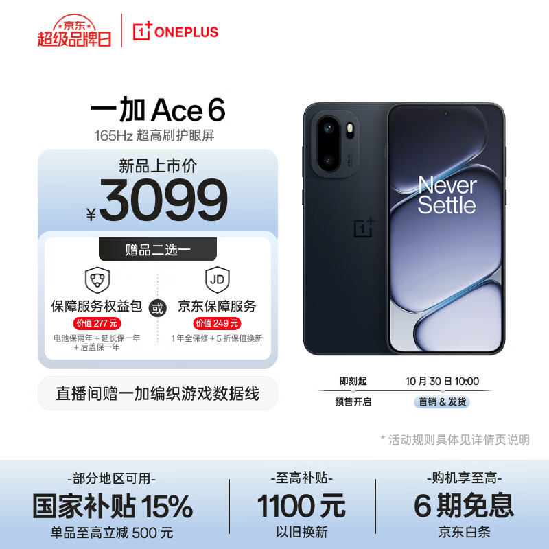 一加 Ace 6 12GB+512GB 竞黑 骁龙 8 至尊版 165Hz 超高刷护眼电竞屏 oppo游戏电竞5G手机 国家补贴