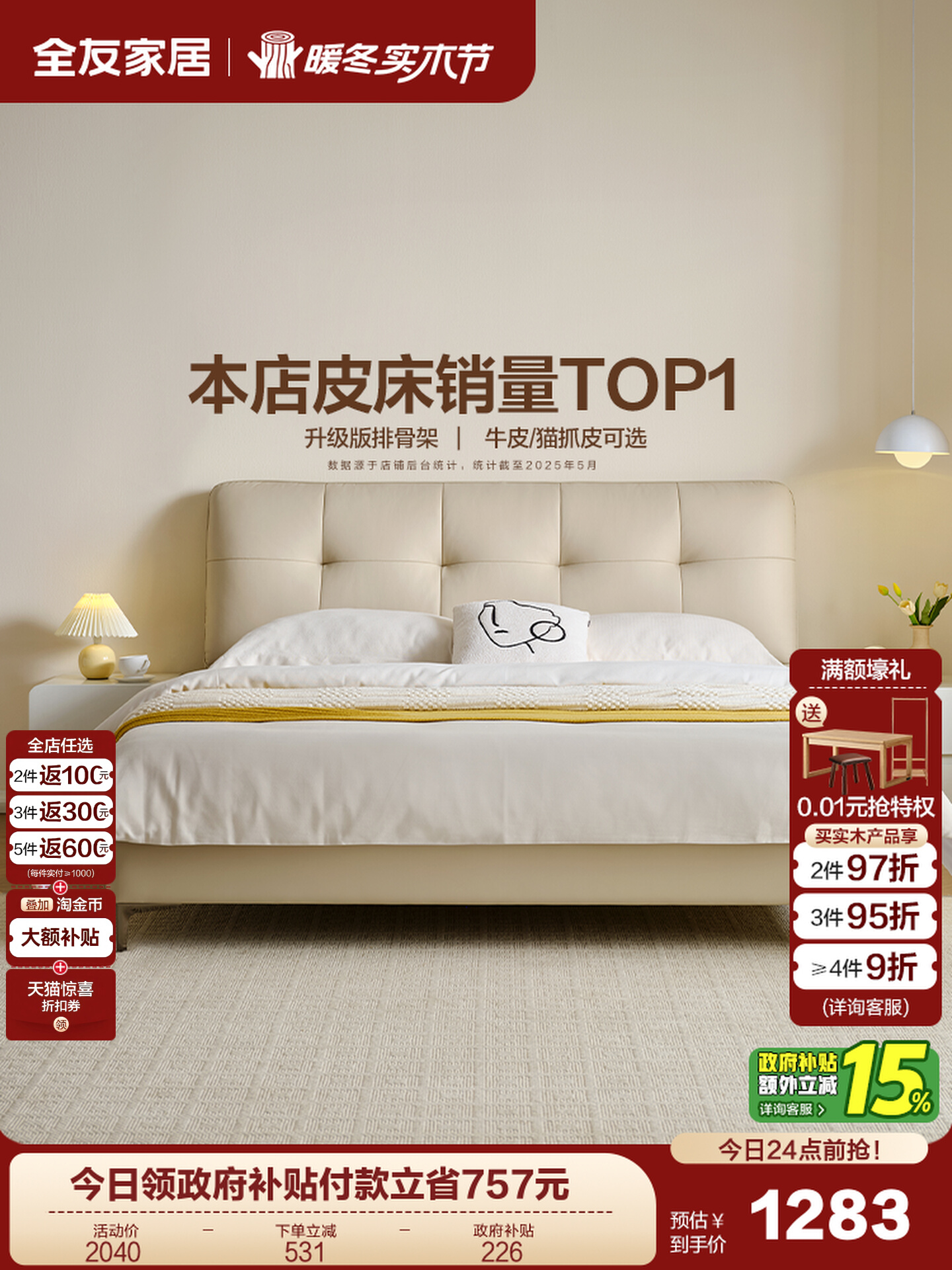 È«ÓѼҾÓÄÌÓÍ·çÖ÷ÎÔÊÒ1Ã×8Ë«ÈËÕæÆ¤´¢Îï´²2025пîÈí°ü1.5mµ¥ÈË´²