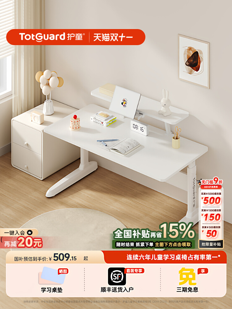 护童儿童学习桌小学生实木书桌可升降家用简约平面写字桌办公桌子