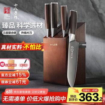 十八子作 刀具菜刀套装切片刀水果刀砍骨刀 十八子切菜刀家用厨房刀具套装 铭锦刀具木座【ZH003】 5件套