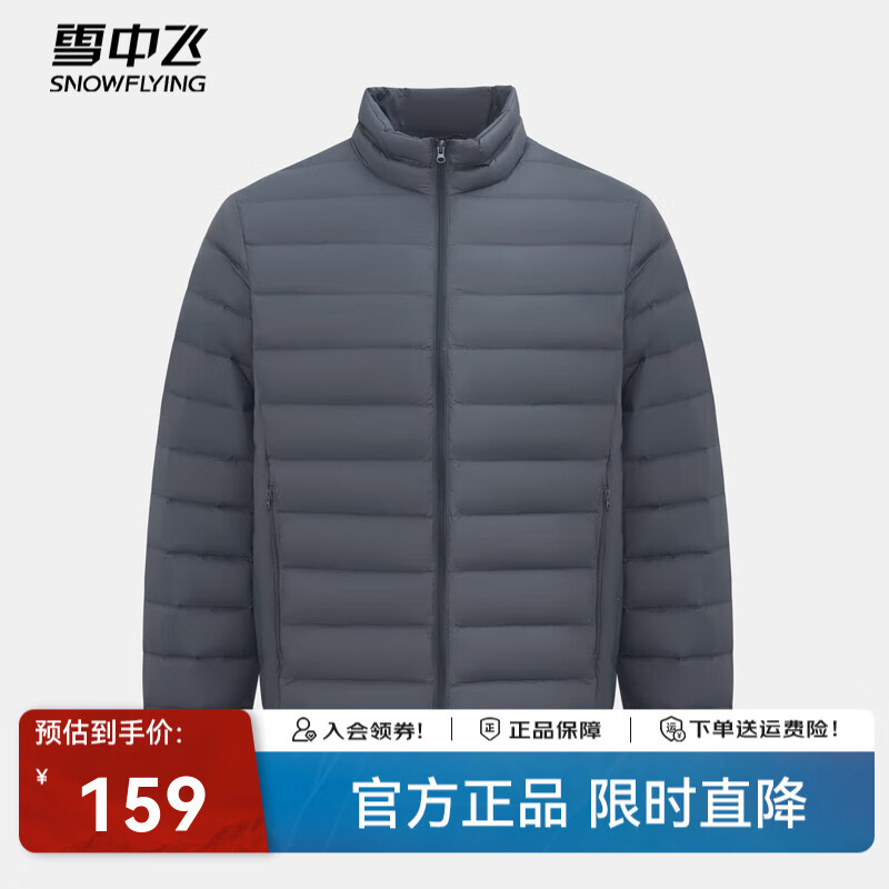 雪中飞男女立领秋羽绒百搭轻薄鸭绒立领修身轻盈隐藏式口袋 朱墨灰|8C83-男 L 175/96A