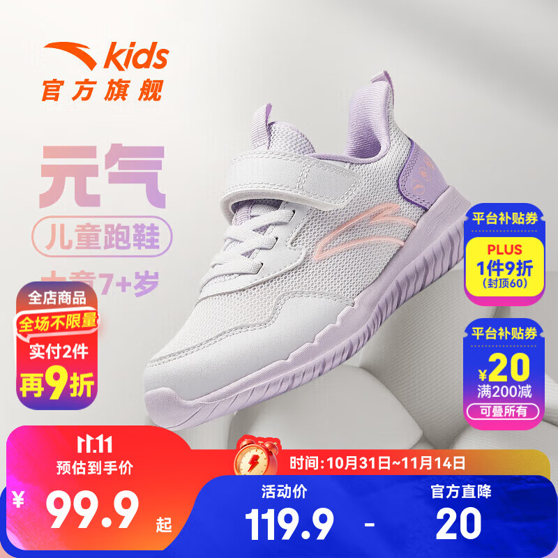 鸿星尔克(ERKE)童鞋男女童运动鞋儿童中大童旋钮扣休闲鞋暖亚麻/正黑36