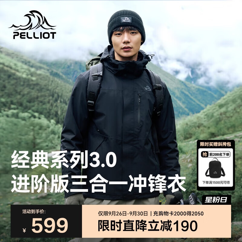 伯希和(Pelliot)[经典3.0]户外三合一冲锋衣秋冬男女硬壳外套登山服115301054黑M