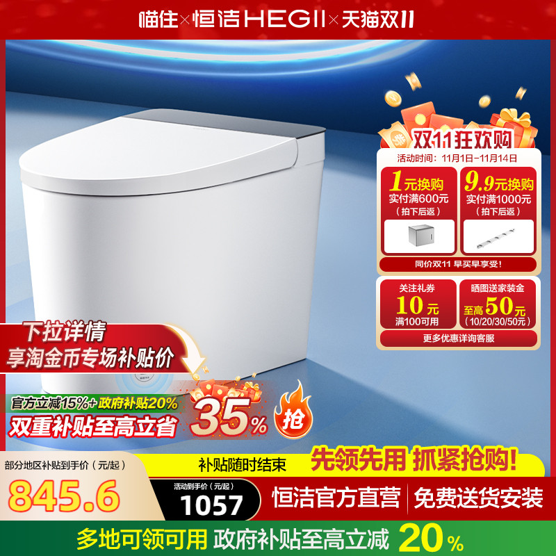 HEGII恒洁轻智能马桶自动冲水小户型家用坐便器521