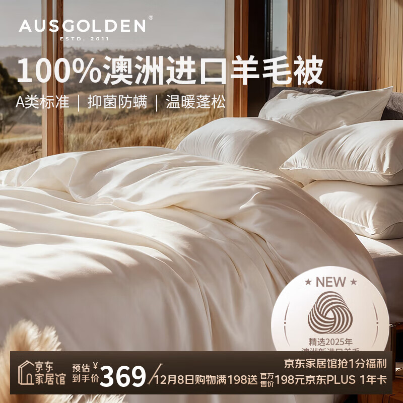 AusGolden澳洲100%纯羊毛被A类抗菌防螨单双人春秋被子加厚冬被被芯四季被 冬被加厚 被芯200*230cm(适1.5/1.8米床)