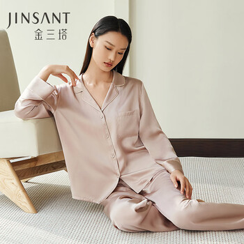 金三塔睡衣女真丝桑蚕丝素色简约可外穿简奢家居服