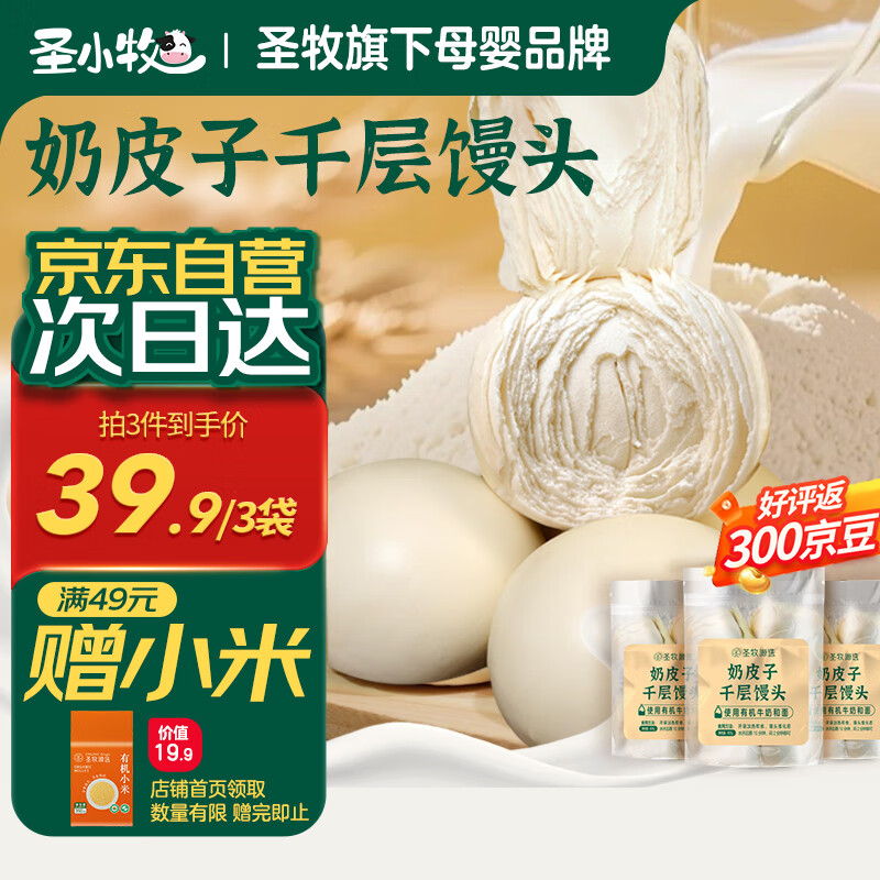 圣牧源选 奶皮子千层馒头 早餐半成品 早饭速食面点625g/袋4个