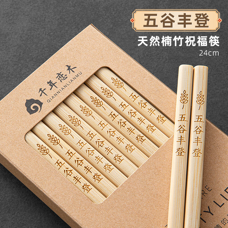 千年恋木楠竹筷天然无漆无蜡实竹家用筷子餐具定制logo刻字批发酒店餐厅 【10双】五谷丰登