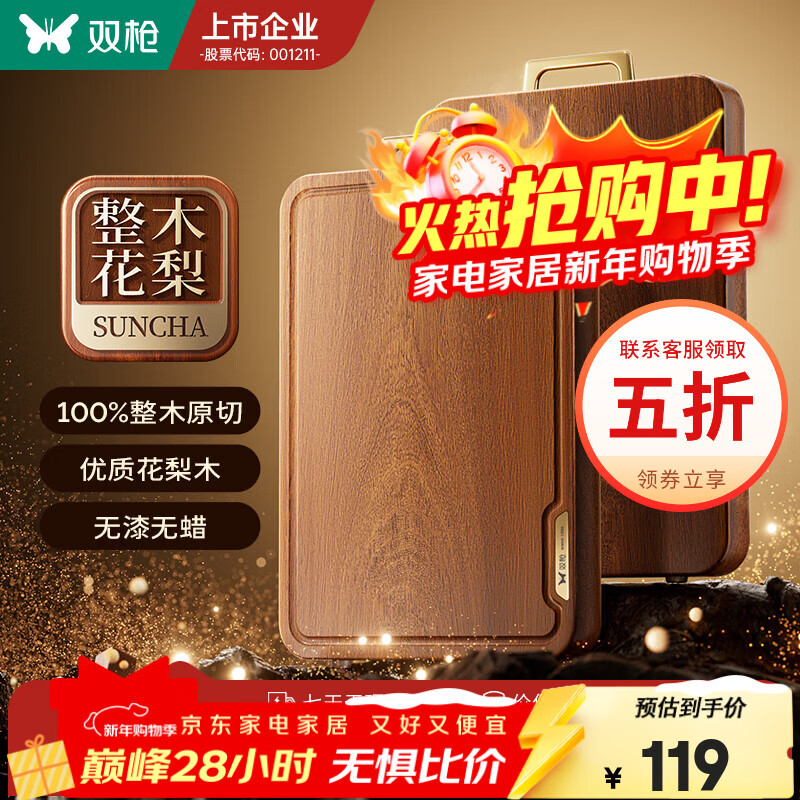 双枪金标非洲花梨木整木切菜板实木菜板防霉抗菌家用食品级案板砧板 【金标加厚】40*28CM(2-4人款)