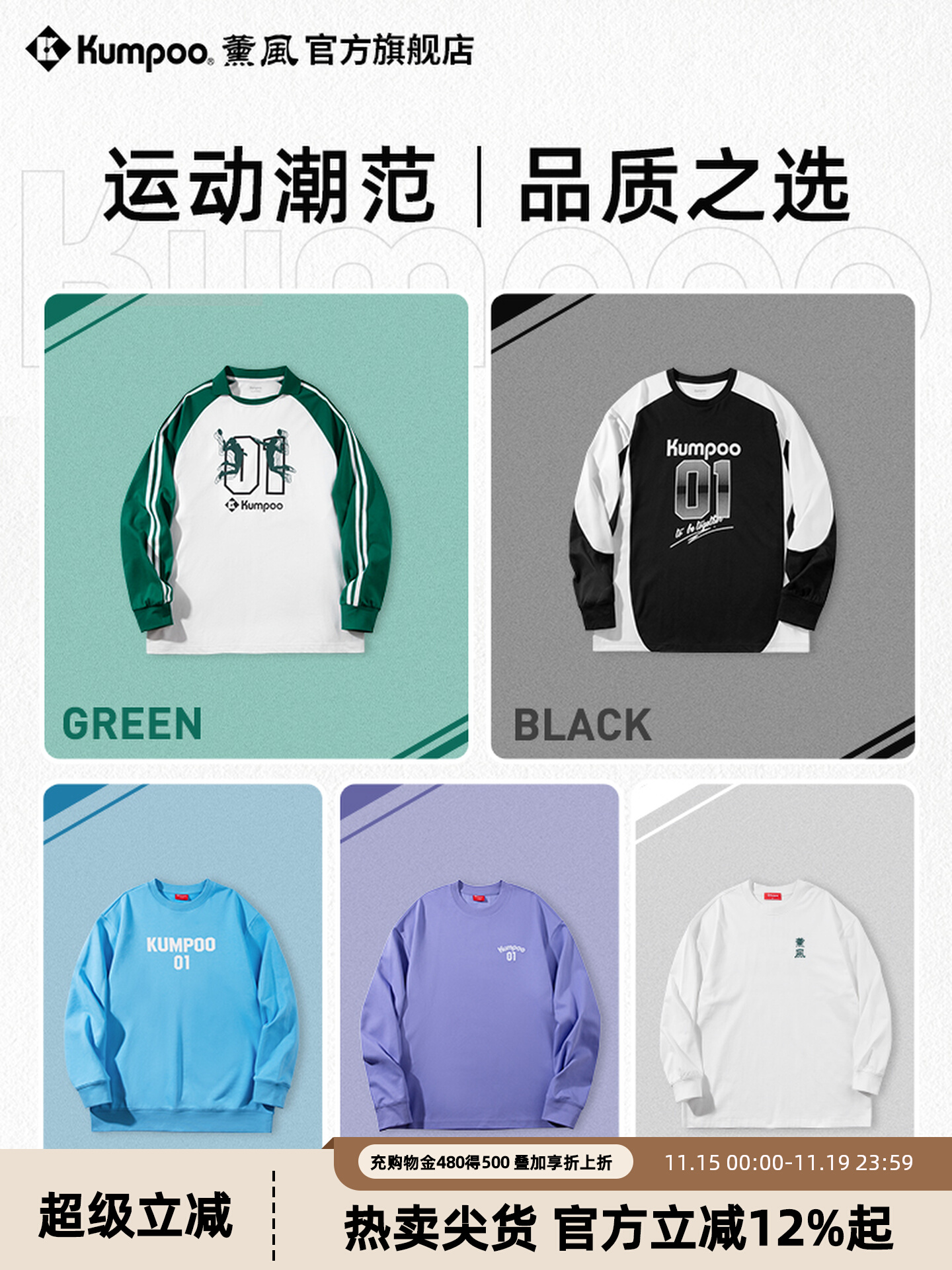 薰风秋冬新款长袖上衣男圆领套头卫衣女休闲百搭熏风长袖运动T恤