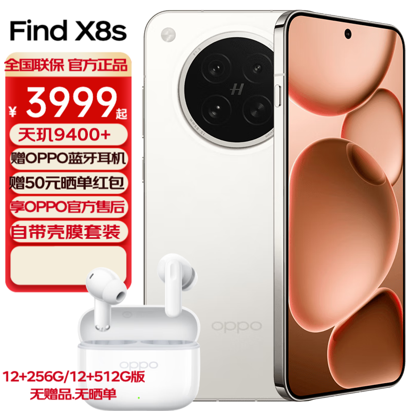 OPPO Find X8s【国家补贴】 旗舰手机 天玑9400+ 哈苏人像 超长续航电池 AI 5G手机 月光白 12GB+256GB 全网通 官方标配