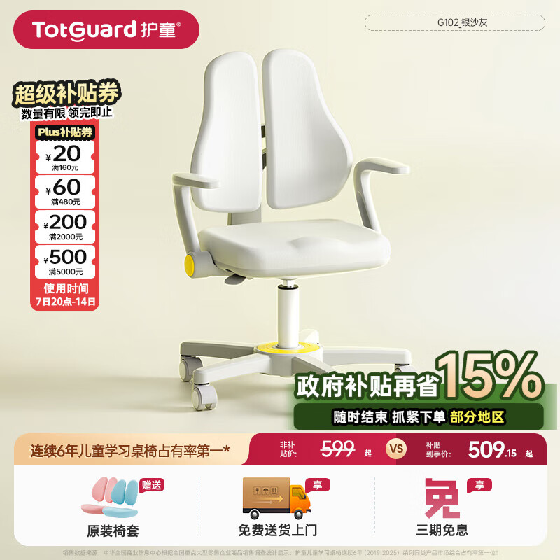 护童(Totguard)G102儿童学习椅写字椅小学生家用可升降调节靠背座椅升降椅电脑椅 G102-银沙灰