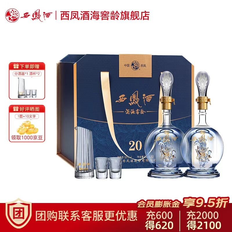 西凤酒 白酒 凤香型52度礼盒装 商务宴请 过节送礼 500ml*2瓶陕西特产 52度 500mL 2瓶 20年传承礼盒