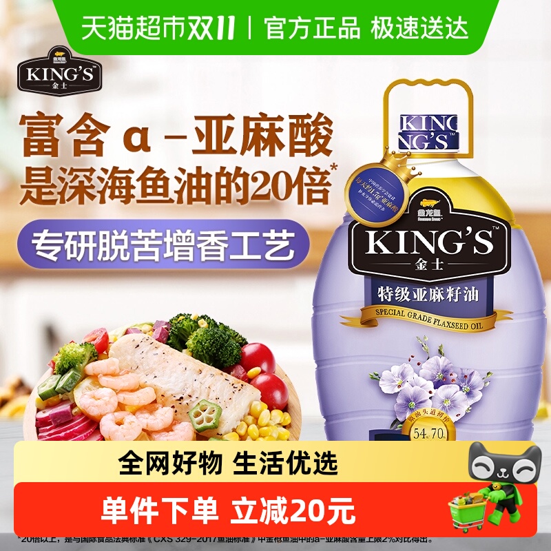 金龙鱼KING'S特级亚麻籽油5L/桶宝宝辅食高亚麻酸食用油