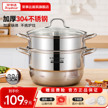 荣事达(Royalstar)蒸锅304加厚不锈钢家用双层复底汤锅蒸鱼锅蒸笼锅电磁炉燃气通用 【304不锈钢蒸锅】双层 30cm