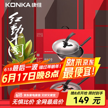 康佳(KONKA)炒锅 红动系列不粘锅 麦饭石色家用炒菜锅电磁炉燃煤气灶通用锅具 (礼盒装)红动中国系列 32cm