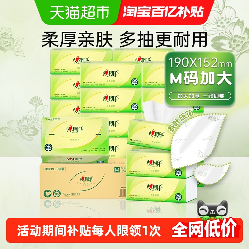 心相印抽纸纸巾茶语系列3层100抽软抽家用卫生纸餐巾纸擦手纸面巾纸纸抽 3层 100抽*60包