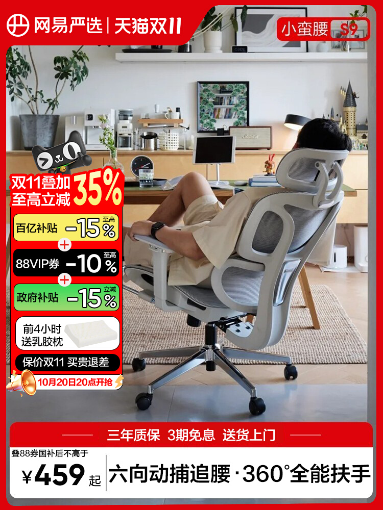 网易严选小蛮腰S9Pro+人体工学椅家用办公室椅子电竞椅电脑椅久坐