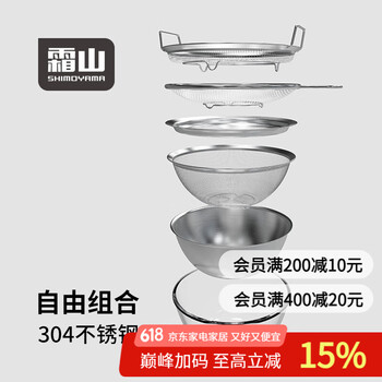 霜山SHIMOYAMA套娃盆304不锈钢厨房备菜盆沥水篮洗菜盆打蛋和面沥水滤油网 *店长推荐【厨房料理6件套装】