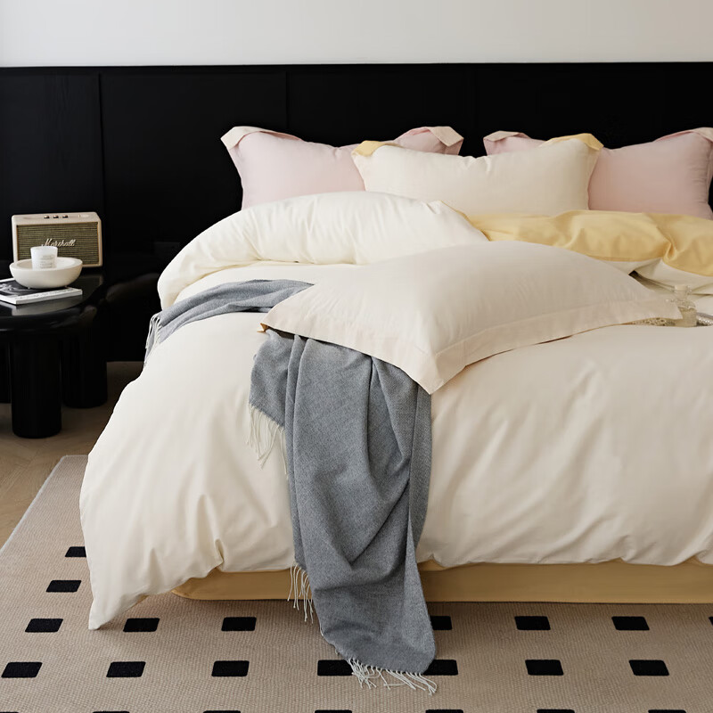 AIDLI 床上四件套60支全棉贡缎新疆长绒棉100%纯棉被套床单酒店套件 日落白(磨毛款) 1.5/1.8m床 床单款 (被套200*230cm)