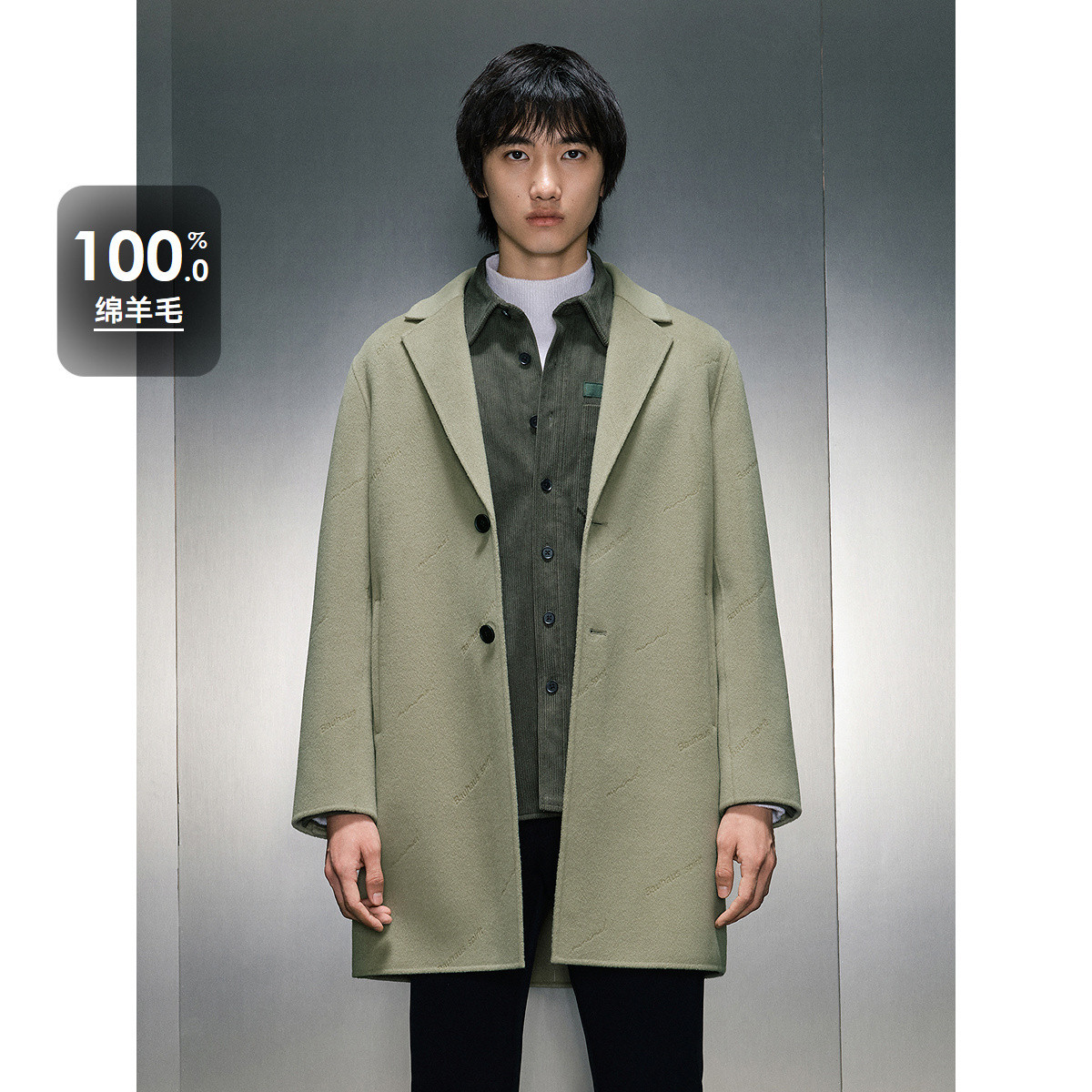【纯羊毛】GXG男装冬季烧花工艺中长款大衣男百搭通勤保暖外套