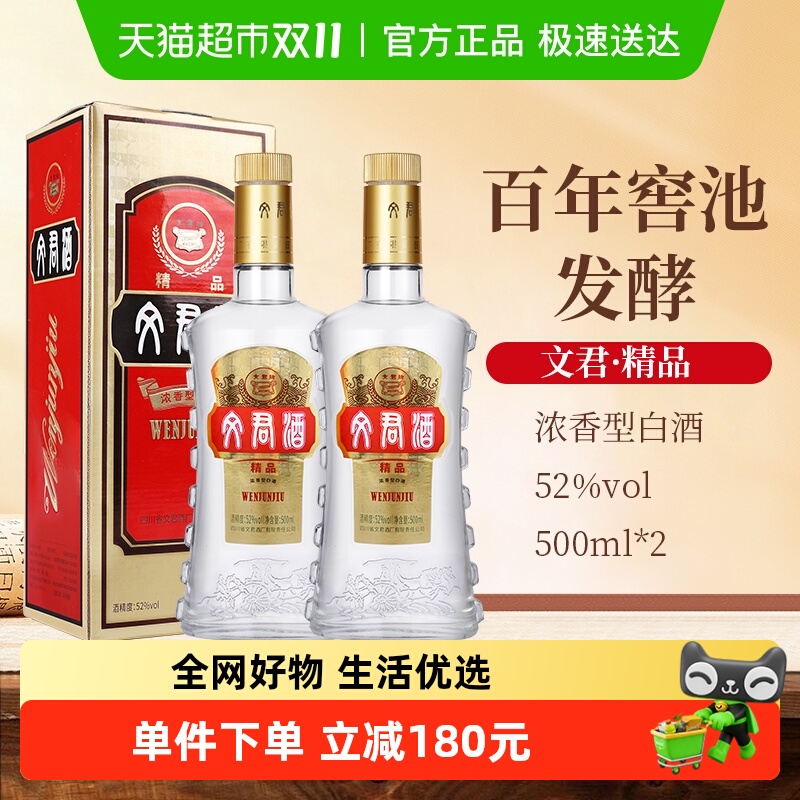 文君52度精品文君浓香型白酒纯粮剑南春集团宴请送礼500ml*2瓶装