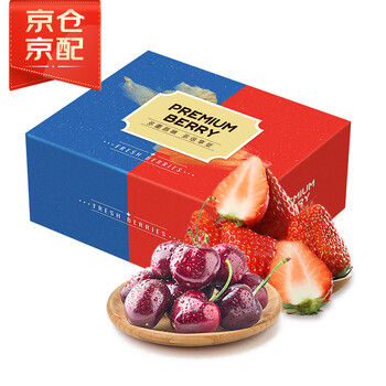 京鲜生 草莓250g*2盒+2J车厘子450g 新鲜水果年货礼盒