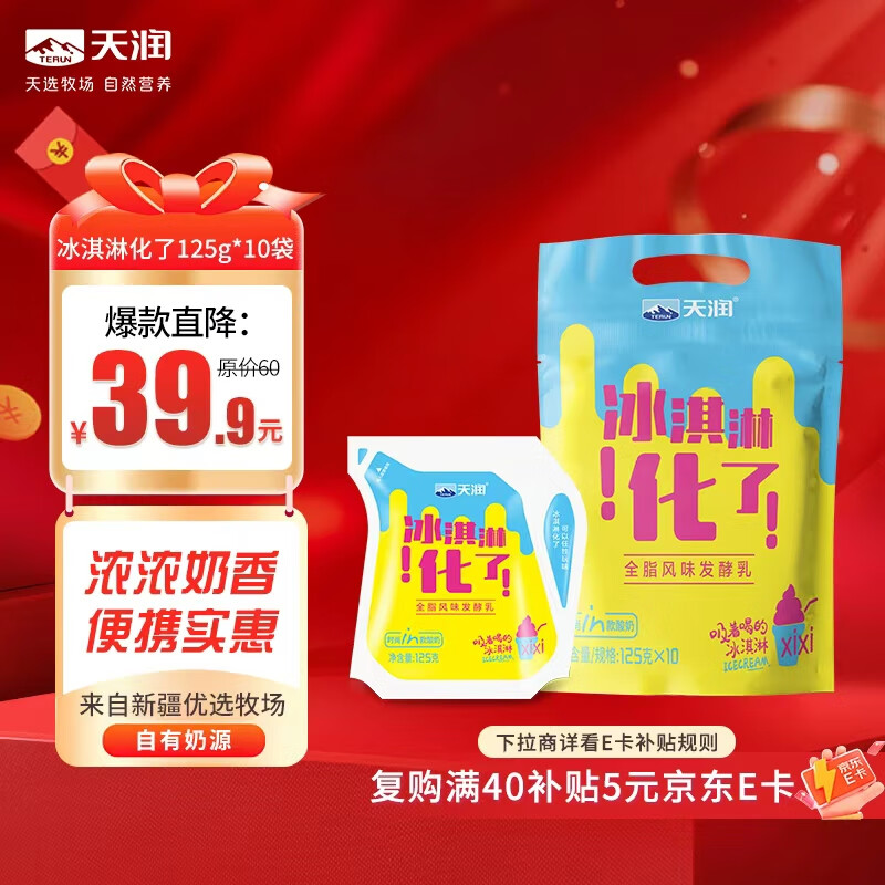 天润新疆特产 浓缩冰淇淋化了 125g*10袋 风味发酵乳酸奶酸牛奶生鲜