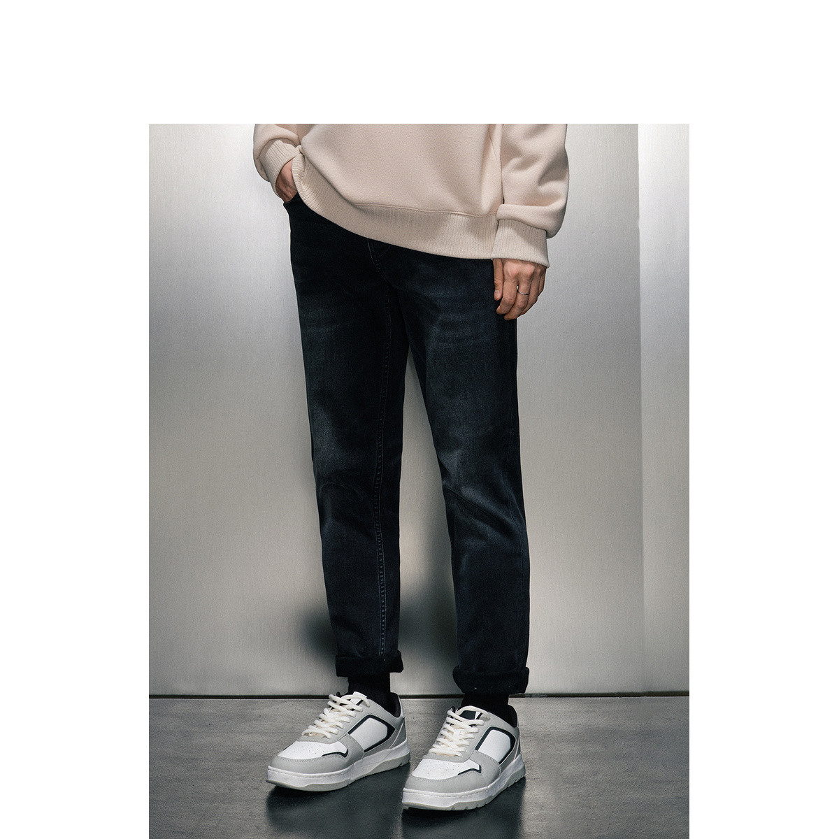 男装 冬季深灰色牛仔长裤男休闲简约通勤锥形裤牛仔裤