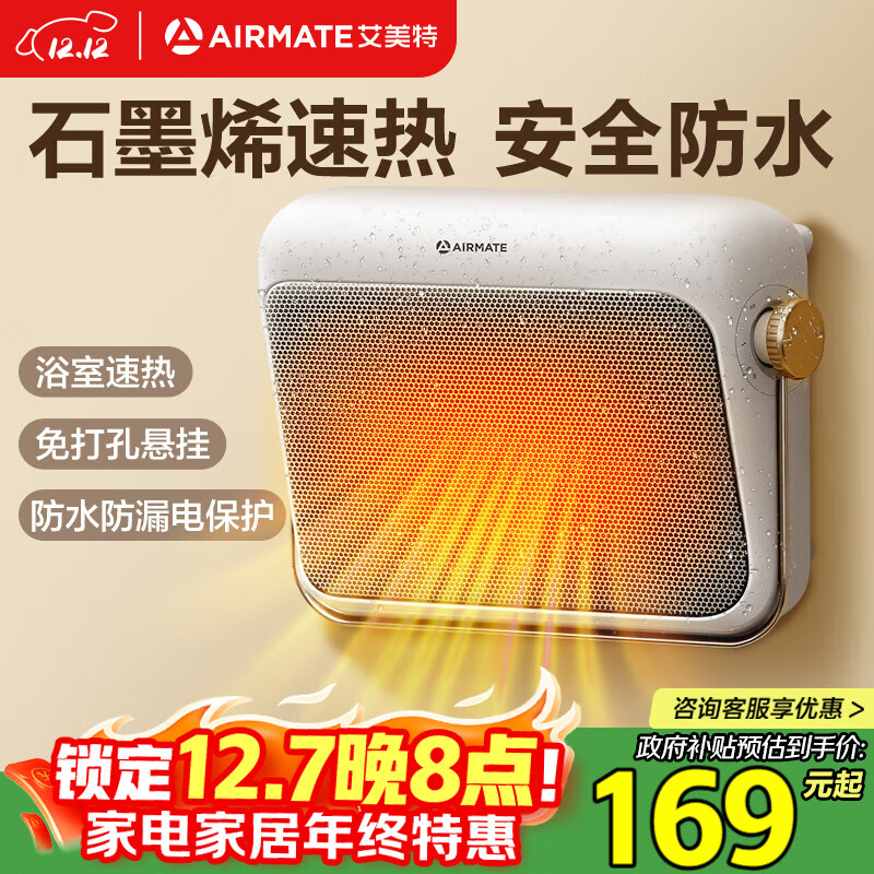 °¬ÃÀÌØ£¨AIRMATE£©¡¾Ê¯Ä«Ï©ËÙÈÈ¡¿Ô¡ÊÒů·ç»úȡůÆ÷µçůÆ÷µçÅ¯Æø¼ÒÓÃС̫ÑôÎÀÉú¼äÔ¡°Ô·ÀË®±Ú¹ÒʽСÐÍÏ´Ôèµçů·ç
