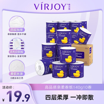 唯洁雅清风高端有芯卷纸亲柔纸140克4层*10卷/提厕纸手纸可冲厕卫生纸