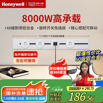 霍尼韦尔(Honeywell)A8轨道插座明装 可移动墙壁插座免打孔壁挂式 滑动轨道排插白75cm