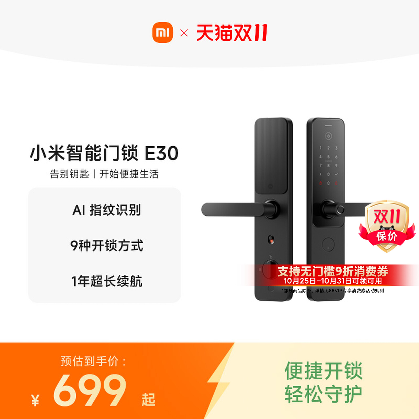 小米智能门锁E30 小米指纹锁家用防盗门密码锁智能门锁智能锁门锁