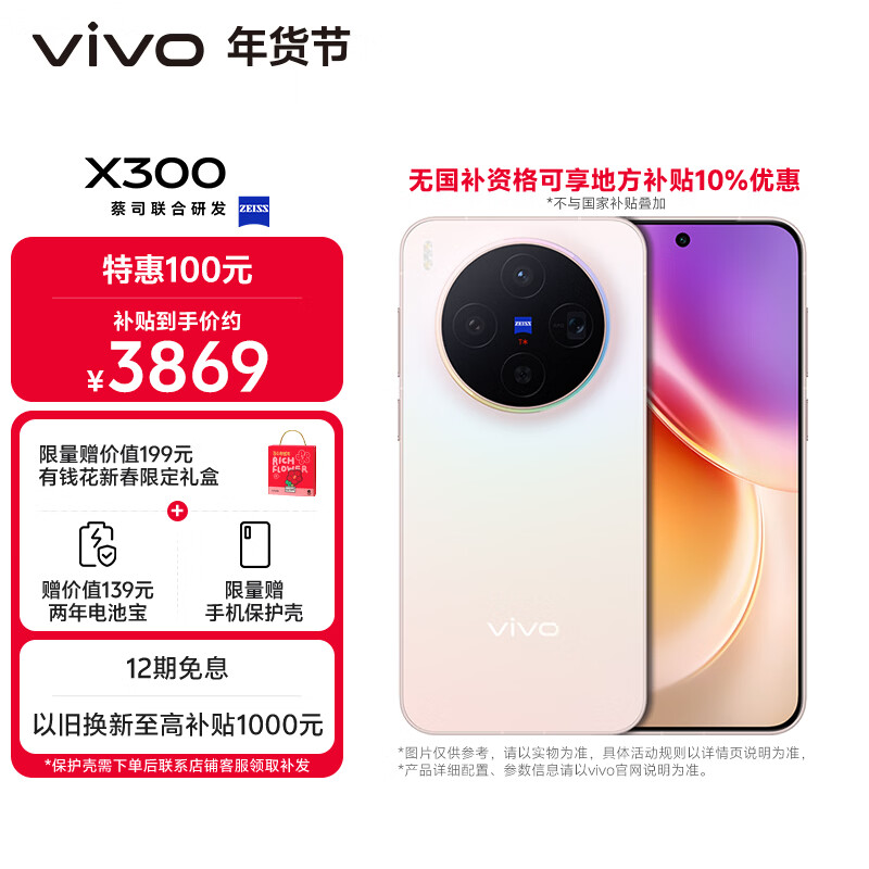 自营vivo X300 12GB+256GB 幸运彩 【地方补贴专享版】蔡司2亿超级主摄 蔡司APO超级长焦 拍照 AI手机