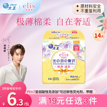 爱璐茜(elis)【活动专享】大王日用卫生巾【品牌直供】 棉柔 180mm 14片 光羽奢适