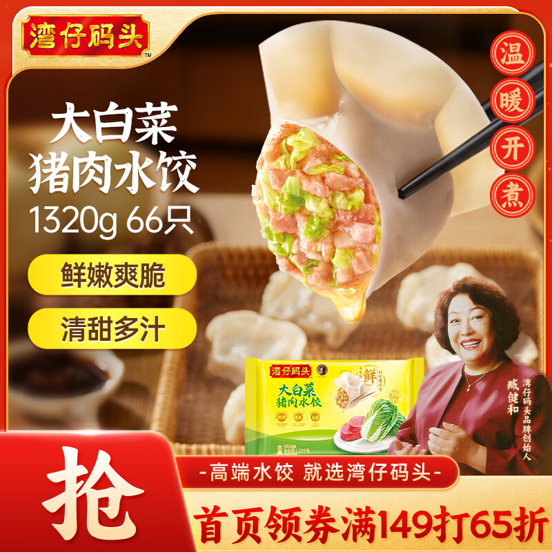 湾仔码头大白菜猪肉水饺1320g66只早餐速食半成品面点速冻饺子